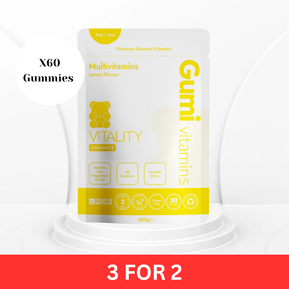 Support your daily wellbeing with Vitality Multivitamin Gummies, a refreshing lemon-flavoured supplement made in Britain. Each gummy is packed with a blend of essential vitamins and minerals designed to help maintain energy metabolism, immune function, and overall vitality.